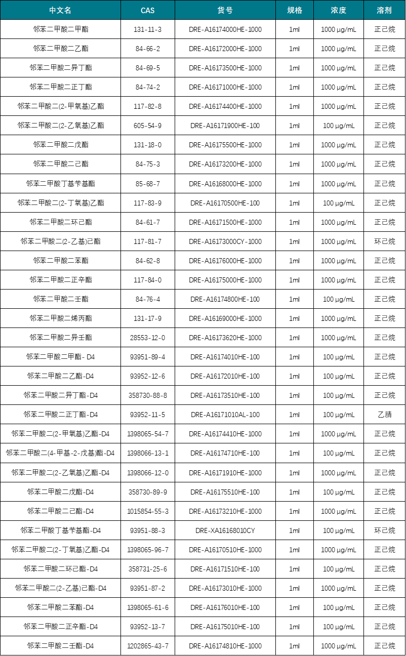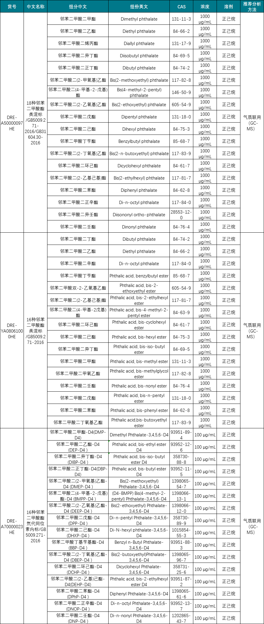 Dr. Ehrenstorfer混标系列之:GB 5009.271-2016 食品安全国家标准 食品中邻苯二甲酸酯的测定